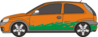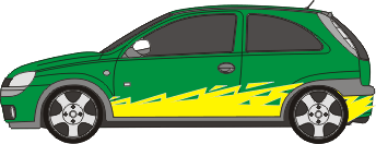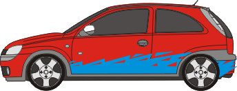 Das einfarbige Set beinhaltet die Aufkleber für zwei Fahrzeugseiten.