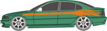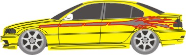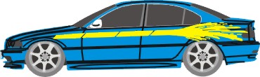 Das zweifarbige Set beinhaltet die Aufkleber für zwei Fahrzeugseiten.