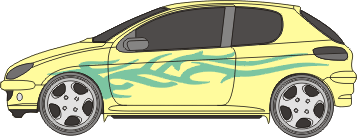 Das Set beinhaltet die Aufkleber für zwei Fahrzeugseiten.