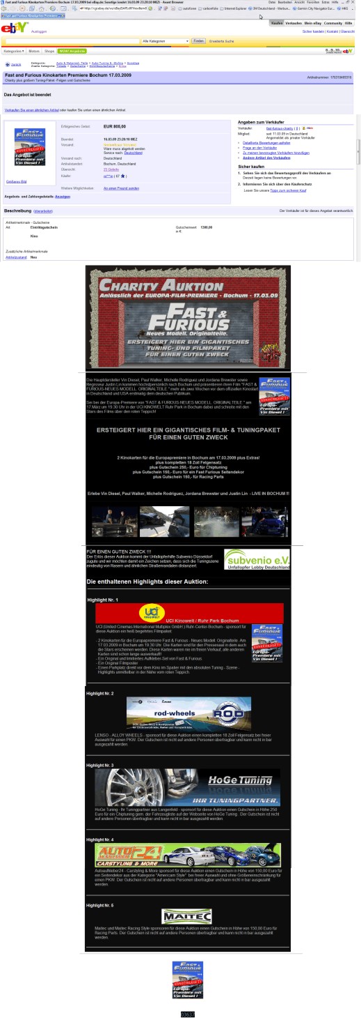 Kinokarten für die Premiere für Fast Furious